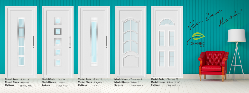 PVC Giriş Kapıları , yalnızca bir tasarım unsuru olmamakla birlikte güvenilir bir şekilde çalışmakta, olumsuz hava koşullarına karşı koruma ve ses izolasyonu sağlamaktadır. Isı yalıtımı ve hırsızlığa karşı koruma sağlamaya yarayan ekstra emniyet seçenekleri ile uzun ömürlüdür ve dikkat çekici görünüm sağlamaktadırlar.